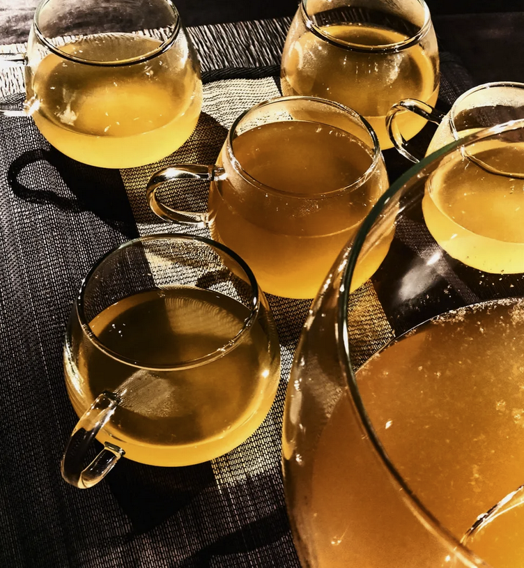 Pflaumwein Ingwer Zitrone Winter warm Getränk,