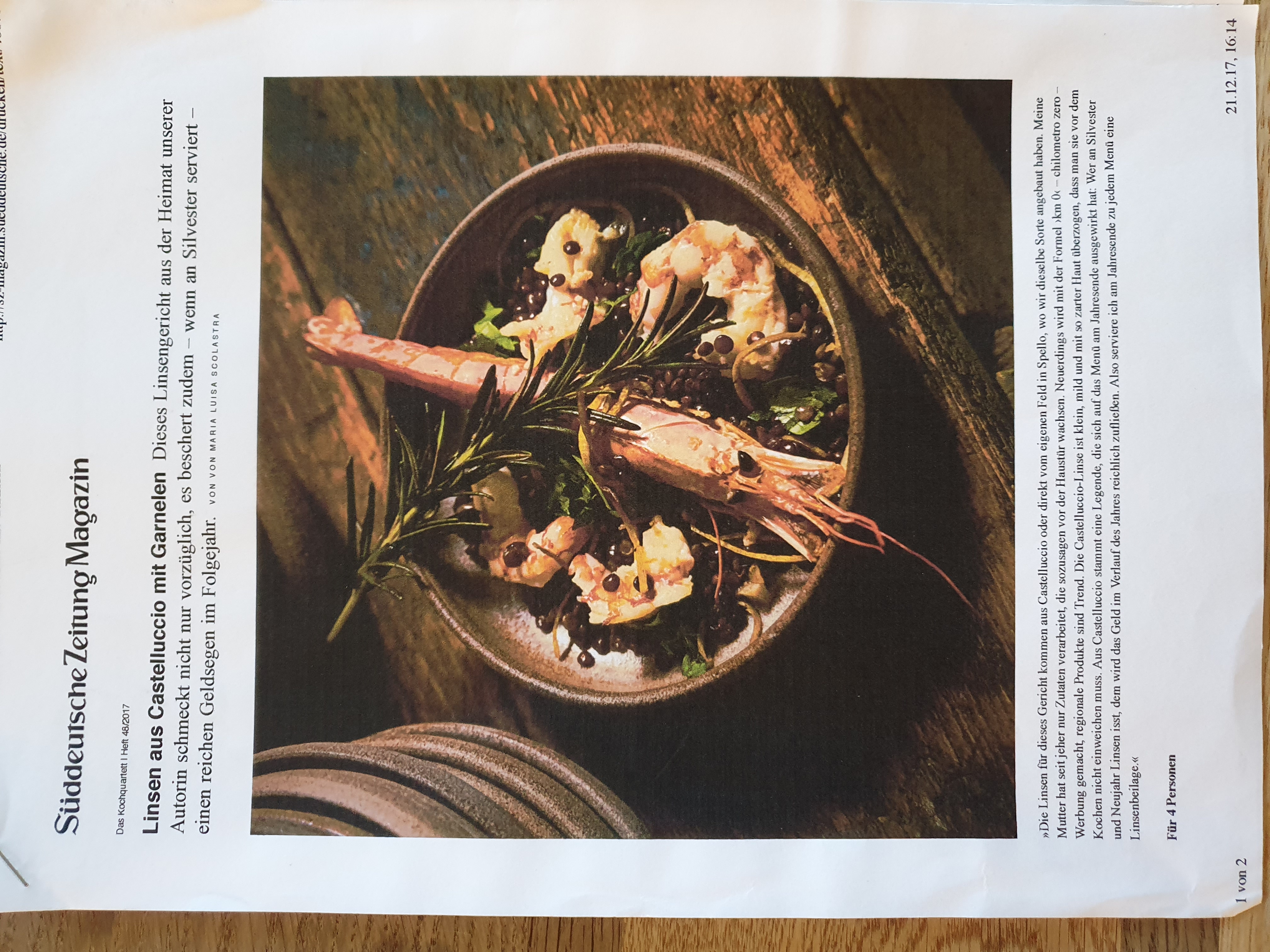 Linsen aus Castelluccio mit Garnelen