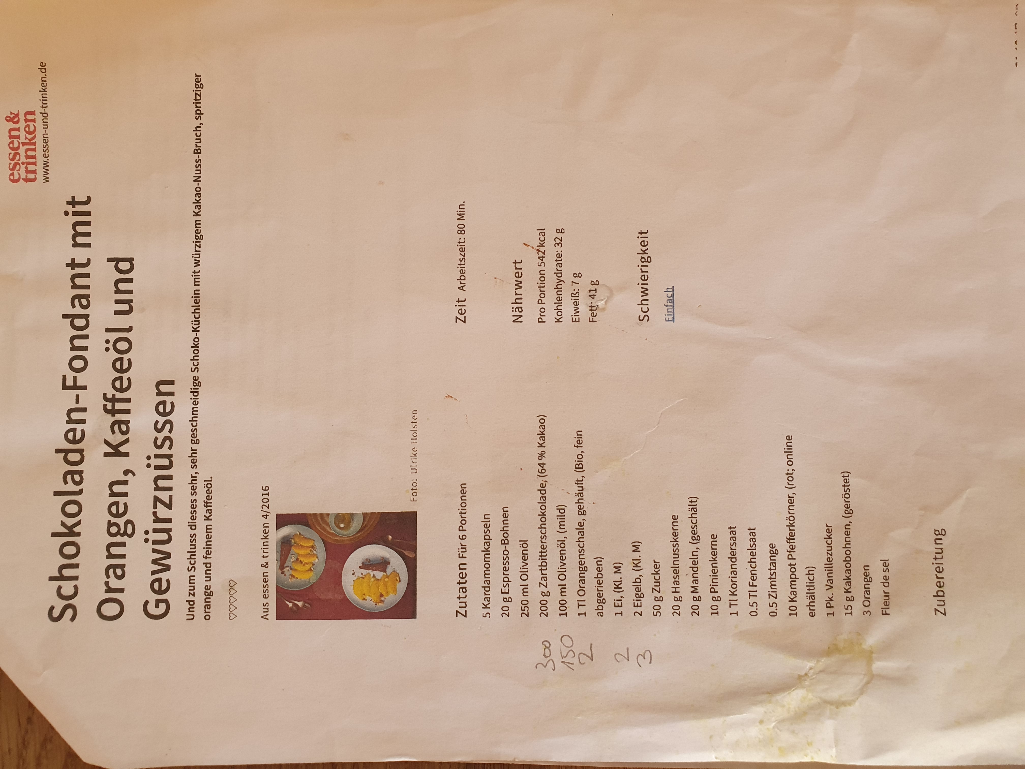 Schokoladenfondant mit Orangen, Kaffeeöl und Gewürznüssen