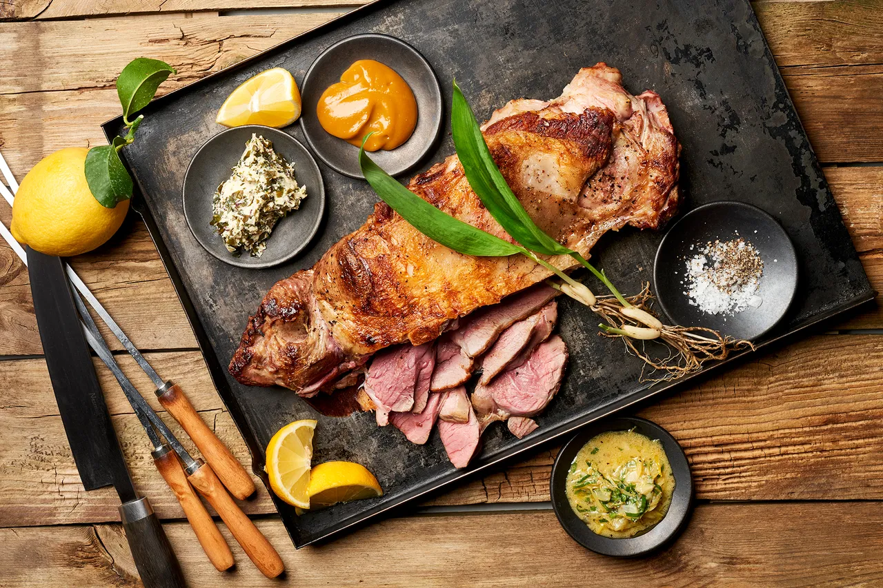 Zart gegrilltes Lamm mit Zitronen- und Misodipp