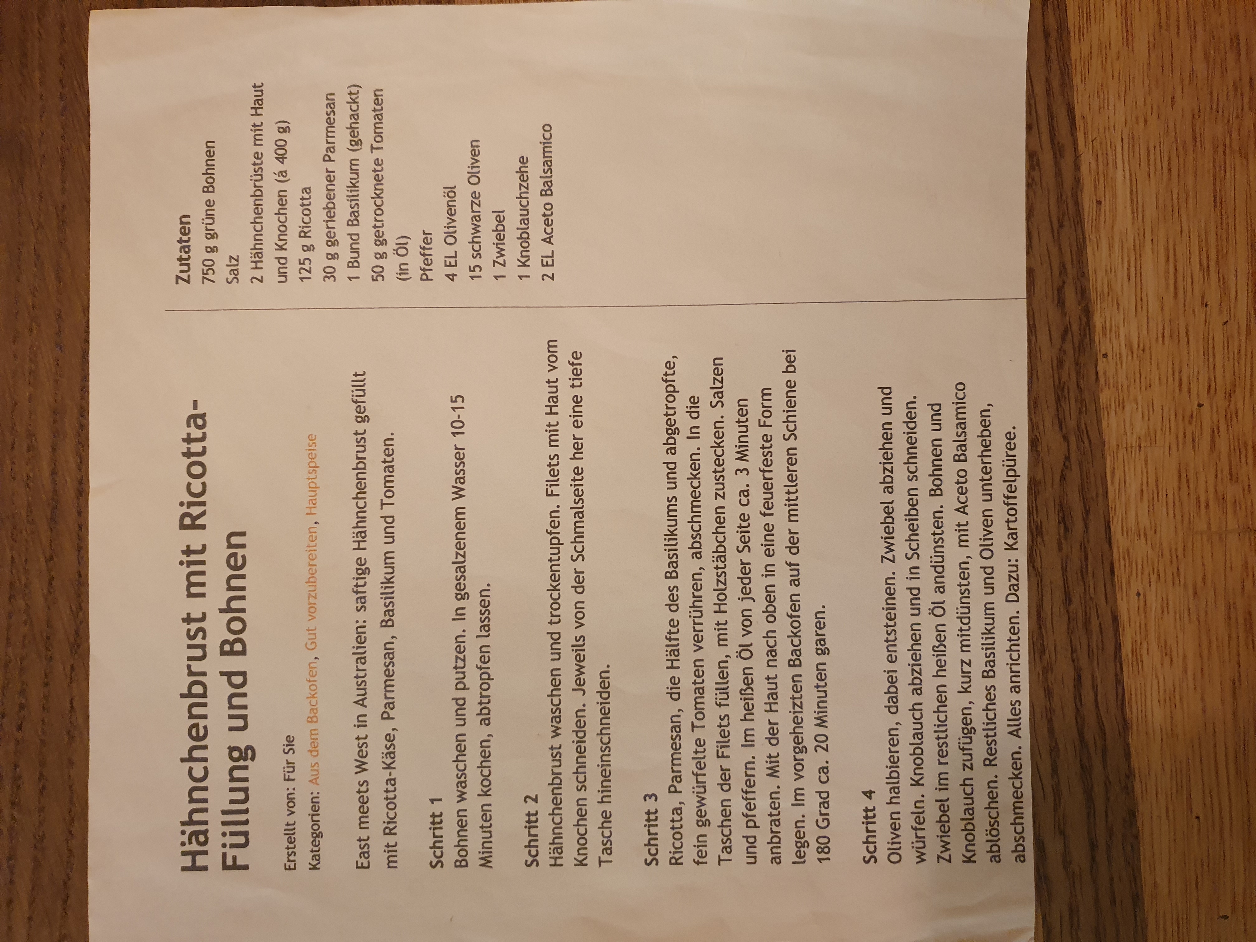 Hähnchenbrust mit Ricotta-Füllung und Bohnen