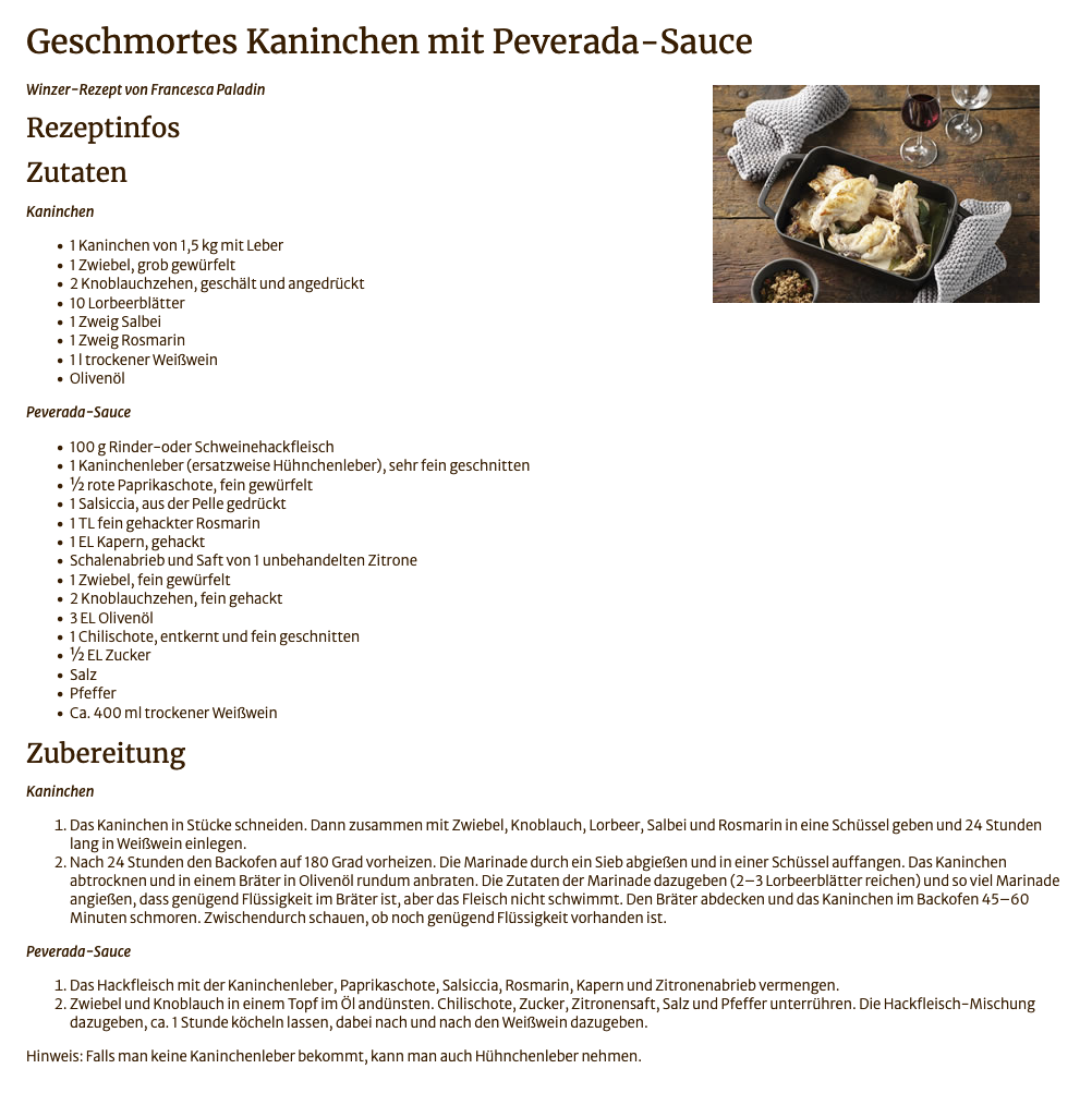 Kaninchen mit Peverada-Sauce