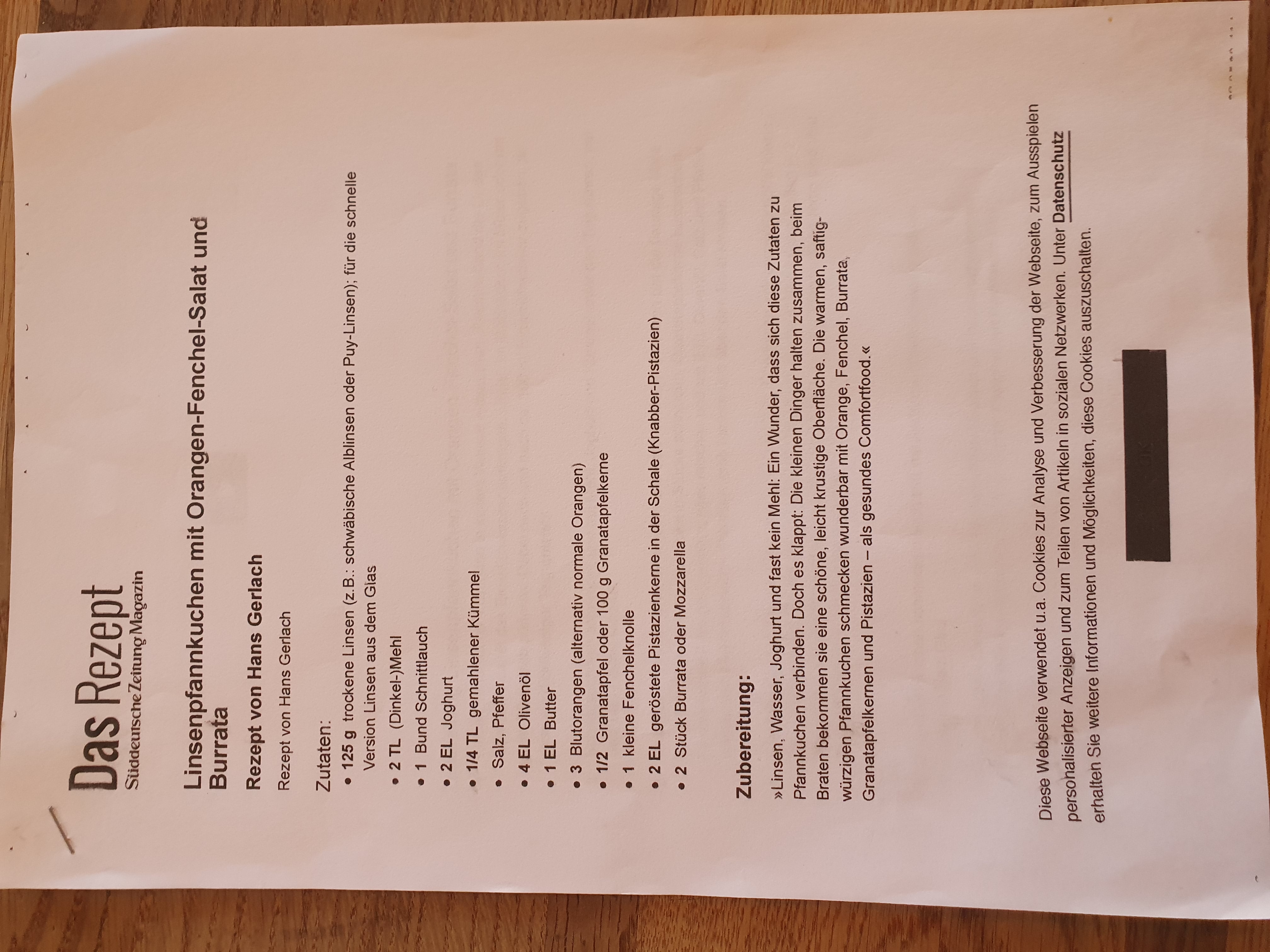 Linsenpfannkuchen mit Orangen-Fenchel-Salat und Burrata