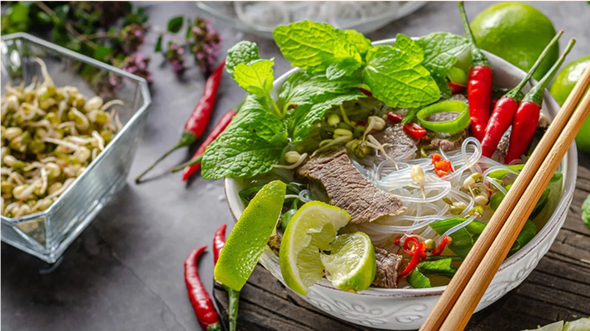 vietnamesische Pho-Suppe mit Reisnudeln und Rindfleisch